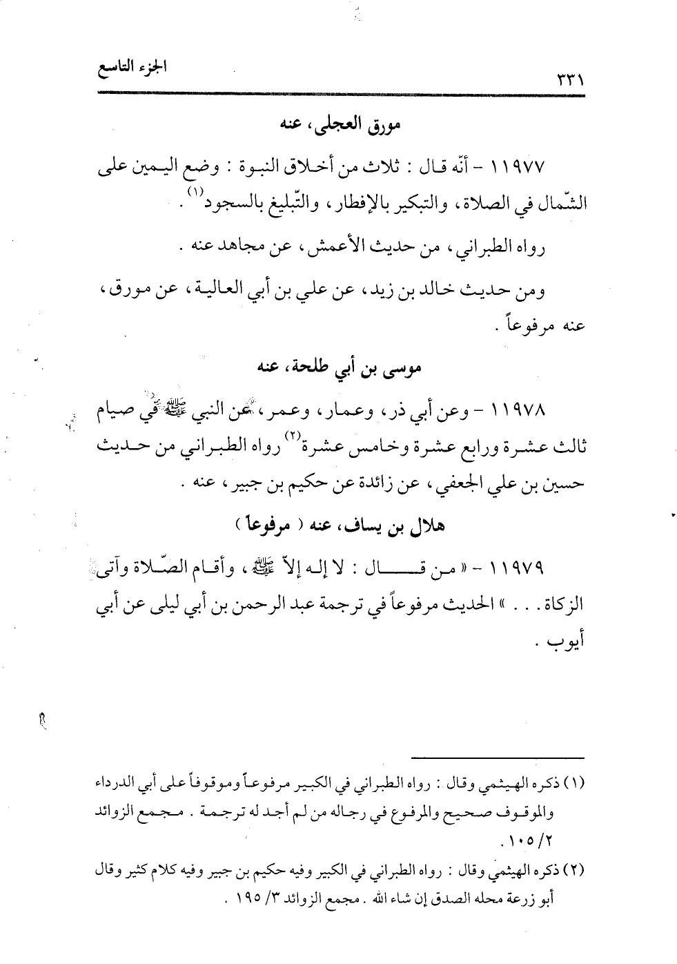 11978 - وعن أبى ذر، وعمار، وعمر، عن النبى - صلى الله عليه وسلم - فى صيام ثالث عشرة ورابع عشرة وخامس عشرة (¬2) رواه الطبرانى من حديث حسين بن علي الجعفى، عن زائدة عن حكيم بن جبير، عنه.