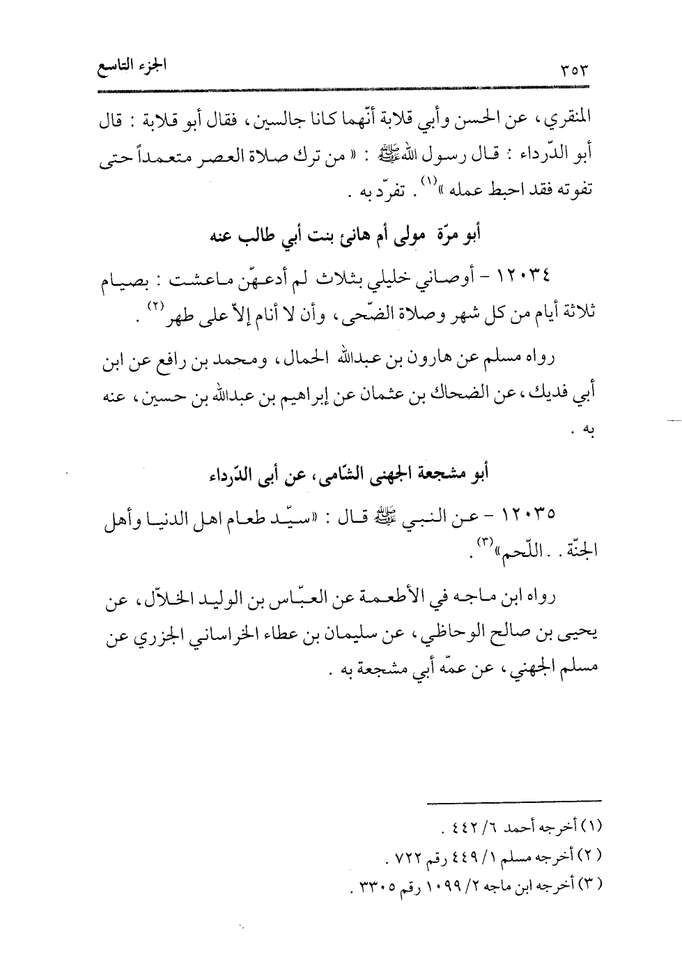 رواه ابن ماجه فى الأطعمة عن العباس بن الوليد الخلال، عن يحيى بن صالح الوحاظى، عن سليمان بن عطاء الخراسانى الجزرى عن مسلم الجهنى، عن عمه أبى مشجعة به.