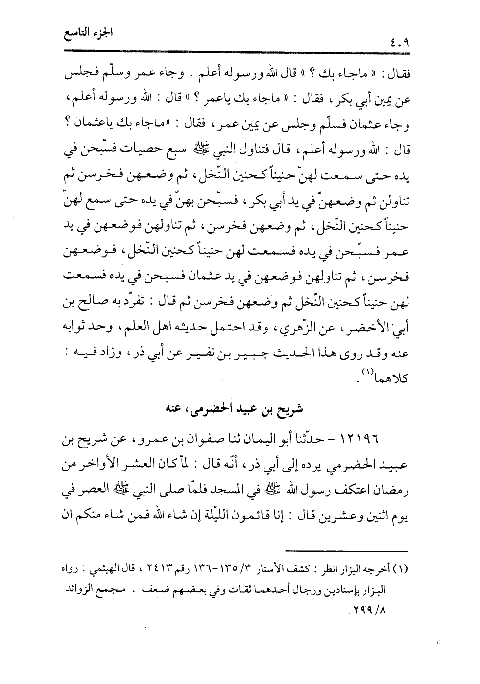 (¬1) أخرجه البزار انظر: كشف الأستار 3/135-136 رقم2413، قال الهيثمى: رواه البزار بإسنادين ورجال أحدهما ثقات وفى بعضهم ضعف. مجمع الزوائد 8/299.