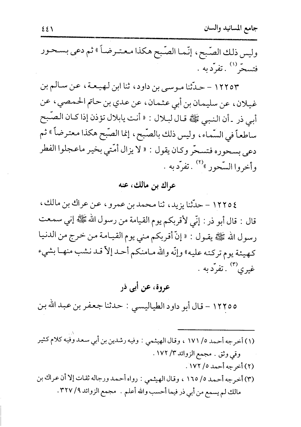 (¬1) أخرجه أحمد 5/165، قال الهيثمى: رواه أحمد ورجاله ثقات إلا أن عراك بن مالك لم يسمع من أبى ذر فيما أحسب والله أعلم. مجمع الزوائد 9/327.