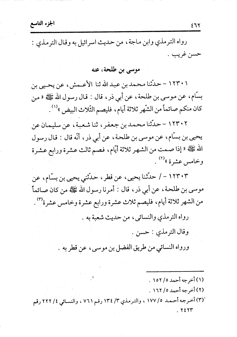 (¬3) أخرجه أحمد 5/177، والترمذى 3/134 رقم761، والنسائى 4/222 رقم2423.