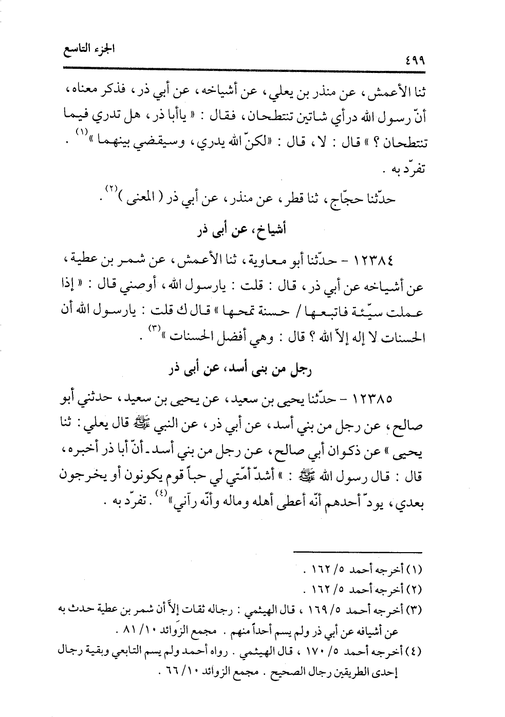 (¬1) أخرجه أحمد 5/169، قال الهيثمى: رجاله ثقات إلا شمر بن عطية حدث به عن أشيافه عن أبى ذر ولم يسم أحدًا منهم. مجمع الزوائد 10/81.