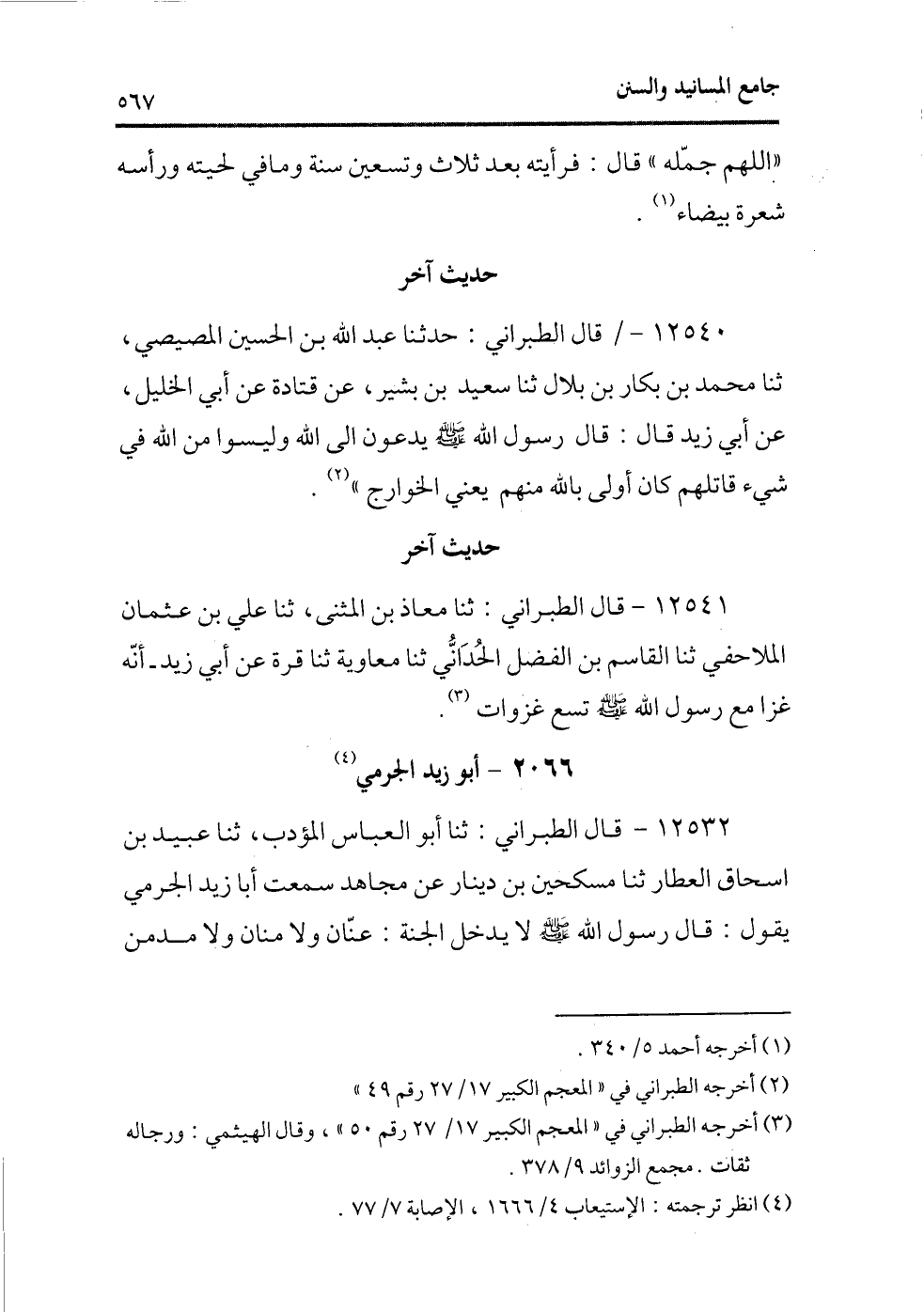 12542 - قال الطبرانى: ثنا أبو العباس المؤدب، ثنا عبيد بن إسحاق العطار ثنا مسكحين بن دينار عن مجاهد سمعت أبا زيد الجرمى يقول: قال رسول الله - صلى الله عليه وسلم - لا يدخل الجنة: عنان ولا منان ولا مدمن