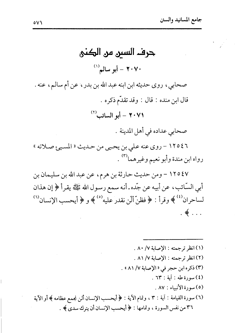 12547 - ومن حديث حارثة بن هرم، عن عبد الله بن سليمان بن أبى السائب، عن أبيه عن جده ـ أنه سمع رسول الله - صلى الله عليه وسلم - يقرأ {إِنْ هَذَانِ لَسَاحِرَانِ (¬4) } وقرأ: {فَظَنَّ أَنْ لَنْ نَقْدِرَ عَلَيْه (¬5) } و {أَيَحْسَبُ الْأِنْسَانُ (¬6) ... } .