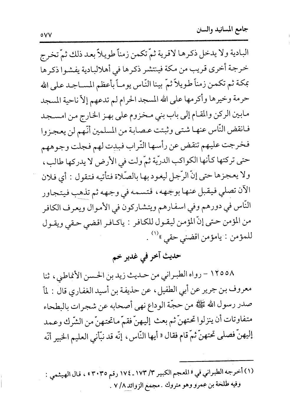 12558 - رواه الطبرانى من حديث زيد بن السحن الأنماطى، ثنا معروف ابن جرير عن أبى الطفيل، عن حذيفة بن أسيد الغفارى قال: لما صدر رسول الله - صلى الله عليه وسلم - من حجة الوداع نهى أصحابه عن شجرات بالبطحاء متفاوتات أن ينزلوا تحتهن ثم بعث إليهم فقم ما تحتهن من الشرك وعمد إليهن فصلى تحتهن ثم قام فقال «أيها الناس، إنه قد نبأنى العليم الخبير أنه