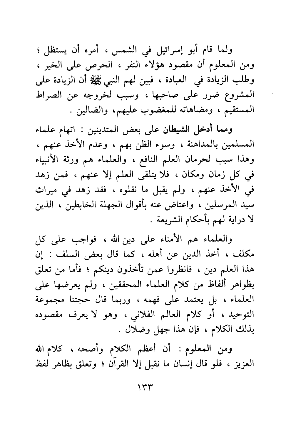 والعلماء هم الأمناء على دين الله، فواجب على كل مكلف، أخذ الدين عن أهله، كما قال بعض السلف: إن هذا العلم دين، فانظروا عمن تأخذون دينكم، فأما من تعلق بظواهر ألفاظ من كلام العلماء المحققين، ولم يعرضها على العلماء، بل يعتمد على فهمه، وربما قال: حجتنا مجموعة التوحيد، أو كلام العالم الفلاني، وهو لا يعرف مقصوده بذلك الكلام، فإن هذا جهل وضلال.