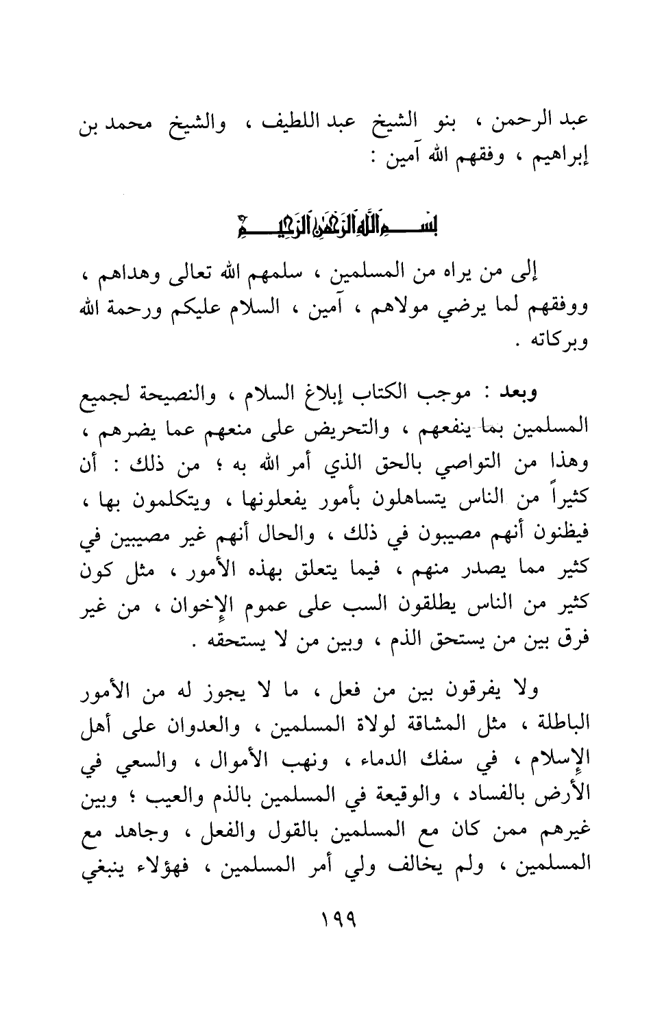 عبد الرحمن، بن الشيخ عبد اللطيف، والشيخ محمد بن إبراهيم، وفقهم الله آمين: