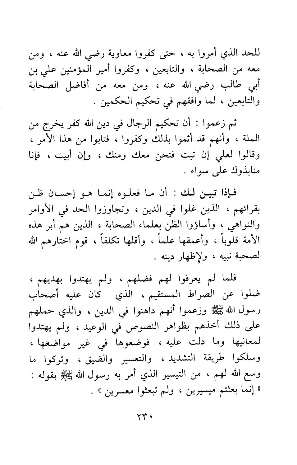 للحد الذي أمروا به، حتى كفروا معاوية رضي الله عنه، ومن معه من الصحابة، والتابعين، وكفروا أمير المؤمنين علي بن أبي طالب رضي الله عنه، ومن معه من أفاضل الصحابة والتابعين، لما وافقهم في تحكيم الحكمين.