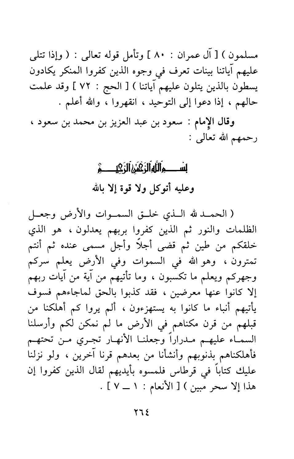 وعليه أتوكل ولا قوة إلا بالله. {الْحَمْدُ لِلَّهِ الَّذِي خَلَقَ السَّمَاوَاتِ وَالْأَرْضَ وَجَعَلَ الظُّلُمَاتِ وَالنُّورَ ثُمَّ الَّذِينَ كَفَرُوا بِرَبِّهِمْ يَعْدِلُونَ هُوَ الَّذِي خَلَقَكُمْ مِنْ طِينٍ ثُمَّ قَضَى أَجَلاً وَأَجَلٌ مُسَمّىً عِنْدَهُ ثُمَّ أَنْتُمْ تَمْتَرُونَ وَهُوَ اللَّهُ فِي السَّمَاوَاتِ وَفِي الأَرْضِ يَعْلَمُ سِرَّكُمْ وَجَهْرَكُمْ وَيَعْلَمُ مَا تَكْسِبُونَ وَمَا تَأْتِيهِمْ مِنْ آيَةٍ مِنْ آيَاتِ رَبِّهِمْ الاَّ كَانُوا عَنْهَا مُعْرِضِينَ فَقَدْ كَذَّبُوا بِالْحَقِّ لَمَّا جَاءَهُمْ فَسَوْفَ يَأْتِيهِمْ أَنْبَاءُ مَا كَانُوا بِهِ يَسْتَهْزِئُونَ أَلَمْ يَرَوْا كَمْ أَهْلَكْنَا مِنْ قَبْلِهِمْ مِنْ قَرْنٍ مَكَّنَّاهُمْ فِي الأَرْضِ مَا لَمْ نُمَكِّنْ لَكُمْ وَأَرْسَلْنَا السَّمَاءَ عَلَيْهِمْ مِدْرَاراً وَجَعَلْنَا الْأَنْهَارَ تَجْرِي مِنْ تَحْتِهِمْ فَأَهْلَكْنَاهُمْ بِذُنُوبِهِمْ وَأَنْشَأْنَا مِنْ بَعْدِهِمْ قَرْناً آخَرِينَ وَلَوْ نَزَّلْنَا عَلَيْكَ كِتَاباً فِي قِرْطَاسٍ فَلَمَسُوهُ بِأَيْدِيهِمْ لَقَالَ الَّذِينَ كَفَرُوا إِنْ هَذَا الاَّ سِحْرٌ مُبِينٌ} [سورة الأنعام آية: 1-7] .