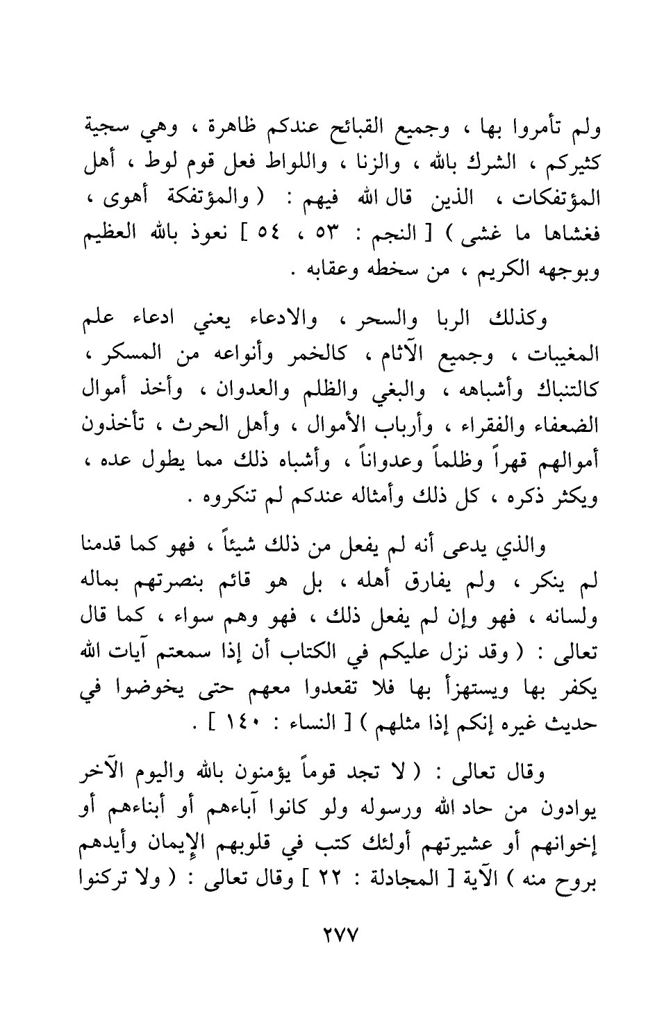 وقال تعالى: {لا تَجِدُ قَوْماً يُؤْمِنُونَ بِاللَّهِ وَالْيَوْمِ الآخِرِ يُوَادُّونَ مَنْ حَادَّ اللَّهَ وَرَسُولَهُ وَلَوْ كَانُوا آبَاءَهُمْ أَوْ أَبْنَاءَهُمْ أَوْ إِخْوَانَهُمْ أَوْ عَشِيرَتَهُمْ أُولَئِكَ كَتَبَ فِي قُلُوبِهِمُ الأِيمَانَ وَأَيَّدَهُمْ بِرُوحٍ مِنْهُ} [سورة المجادلة آية: 22] الآية وقال تعالى: {وَلا تَرْكَنُوا