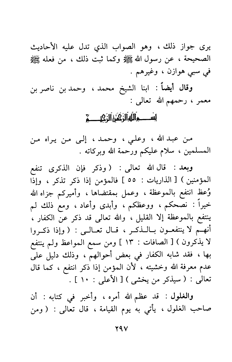 من عبد الله، وعلي، وحمد، إلى من يراه من المسلمين، سلام عليكم ورحمة الله وبركاته. وبعد:
