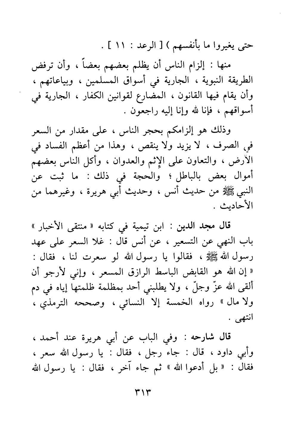 منها: إلزام الناس أن يظلم بعضهم بعضا، وأن ترفض الطريقة النبوية، الجارية في أسواق المسلمين، وبياعاتهم، وأن يقام فيها القانون المضارع لقوانين الكفار، الجارية في أسواقهم، فإنا لله وإنا إليه راجعون.