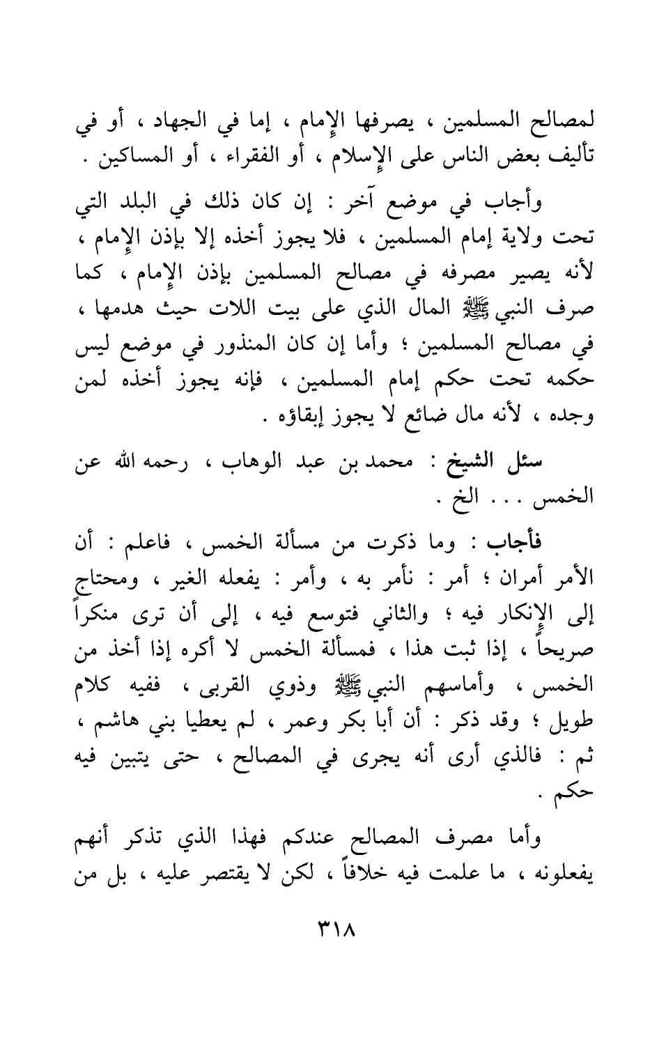 سئل الشيخ محمد بن عبد الوهاب، رحمه الله عن الخمس.. إلخ.