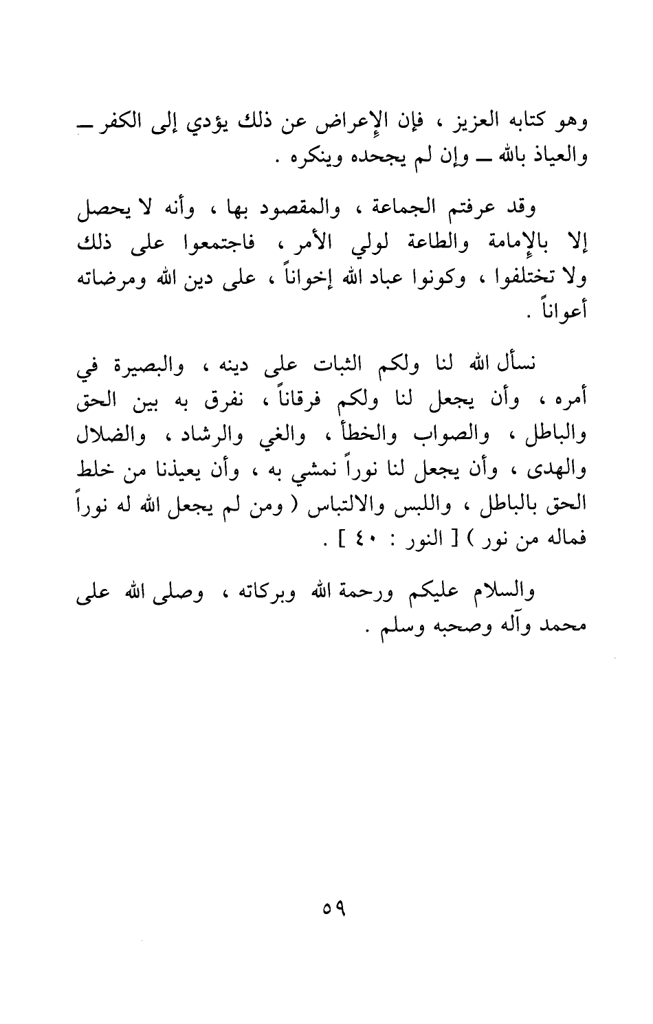 وهو كتابه العزيز، فإن الإعراض عن ذلك يؤدي إلى الكفر - والعياذ بالله - وإن لم يجحده وينكره.