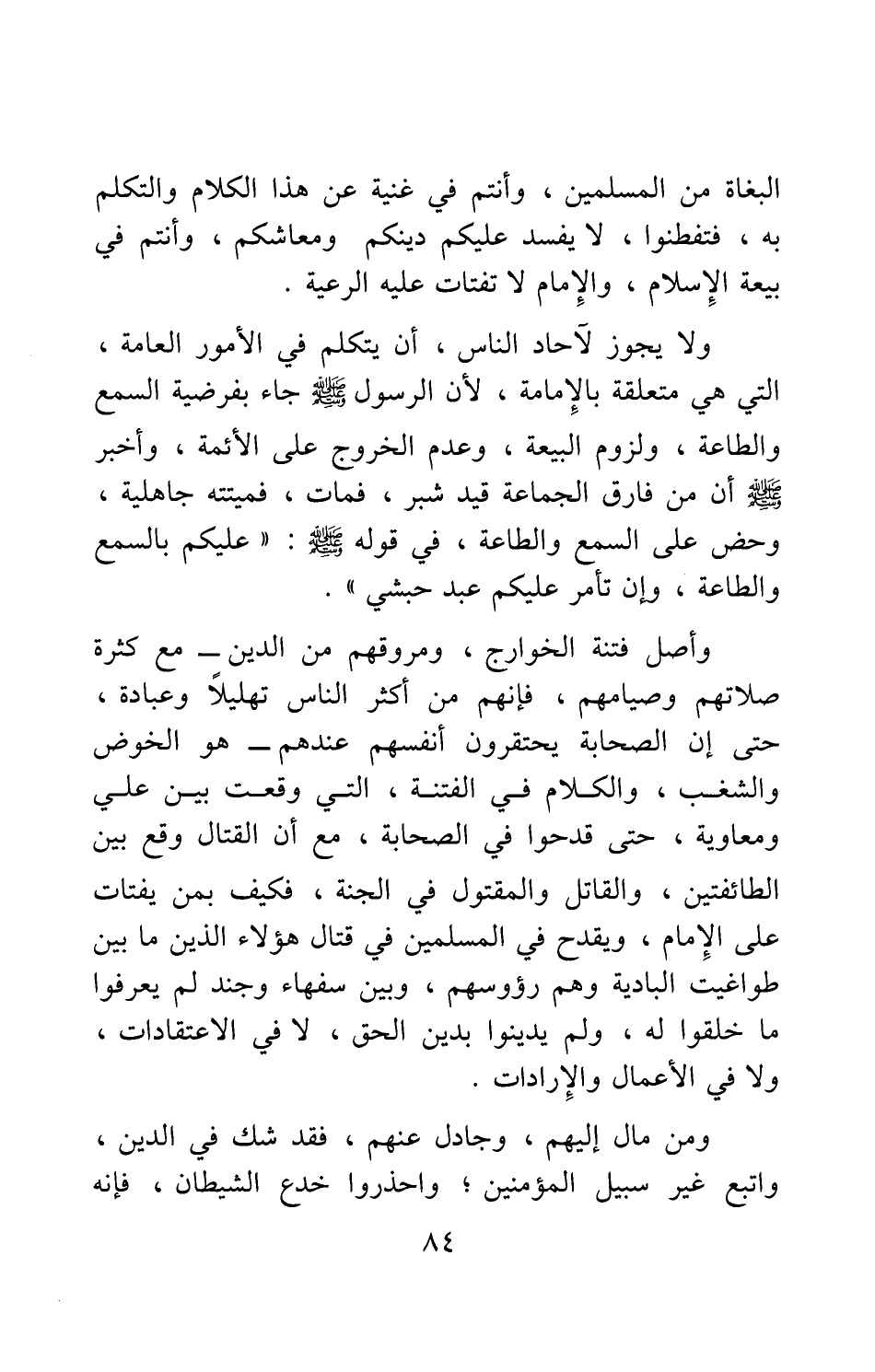 البغاة من المسلمين، وأنتم في غنية عن هذا الكلام والتكلم به، فتفطنوا، لا يفسد عليكم دينكم ومعاشكم، وأنتم في بيعة الإسلام، والإمام لا تفتات عليه الرعية.
