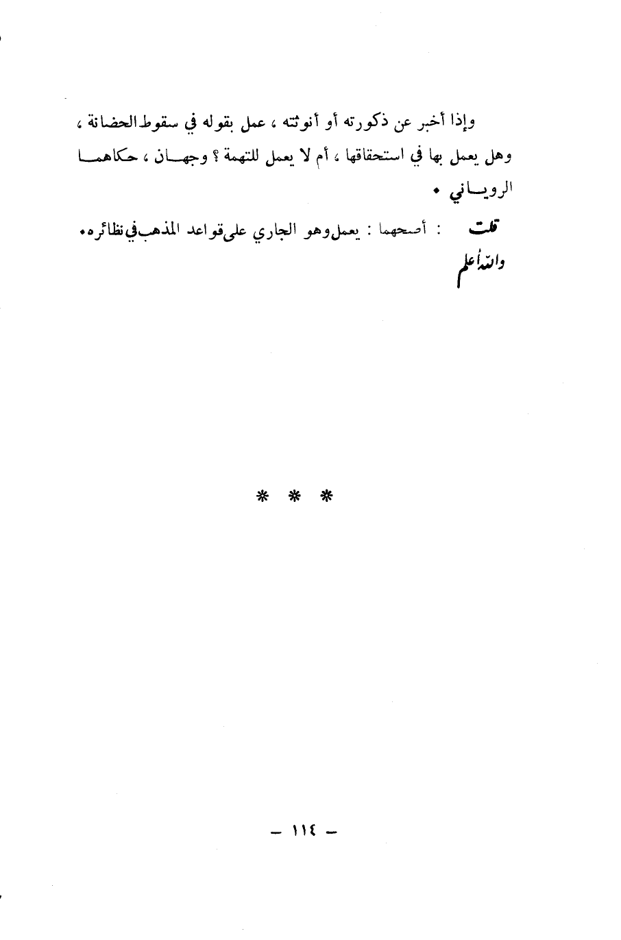 وَإِذَا أَخْبَرَ عَنْ ذُكُورَتِهِ أَوْ أُنُوثَتِهِ، عَمِلَ بِقَوْلِهِ فِي سُقُوطِ الْحَضَانَةِ، وَهَلْ يُعْمَلُ بِهَا فِي اسْتِحْقَاقِهَا، أَمْ لَا يُعْمَلُ لِلتُّهْمَةِ؟ وَجْهَانِ، حَكَاهُمَا الرُّويَانِيُّ.
