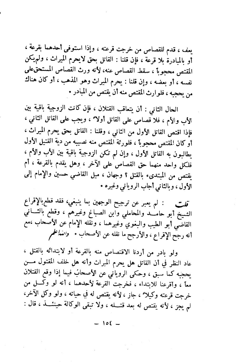 يَعْفُ، قُدِّمَ لِلْقِصَاصِ مَنْ خَرَجَتْ قُرْعَتُهُ، وَإِذَا اسْتَوْفَى أَحَدُهُمَا بِقُرْعَةٍ، أَوْ بِالْمُبَادَرَةِ بِلَا قُرْعَةٍ، فَإِنْ قُلْنَا: الْقَاتِلُ بِحَقٍّ لَا يُحْرَمُ الْمِيرَاثَ، وَلَمْ يَكُنِ الْمُقْتَصُّ مَحْجُوبًا، سَقَطَ الْقِصَاصُ عَنْهُ، لِأَنَّهُ وَرِثَ الْقِصَاصَ الْمُسْتَحَقَّ عَلَى نَفْسِهِ، أَوْ بَعْضَهُ، وَإِنْ قُلْنَا: يَحْرُمُ الْمِيرَاثُ وَهُوَ الْمَذْهَبُ، أَوْ كَانَ هُنَاكَ مَنْ يَحْجُبُهُ، فَلِوَارِثِ الْمُقْتَصِّ مِنْهُ أَنْ يَقْتَصَّ مِنَ الْمُبَادِرِ.