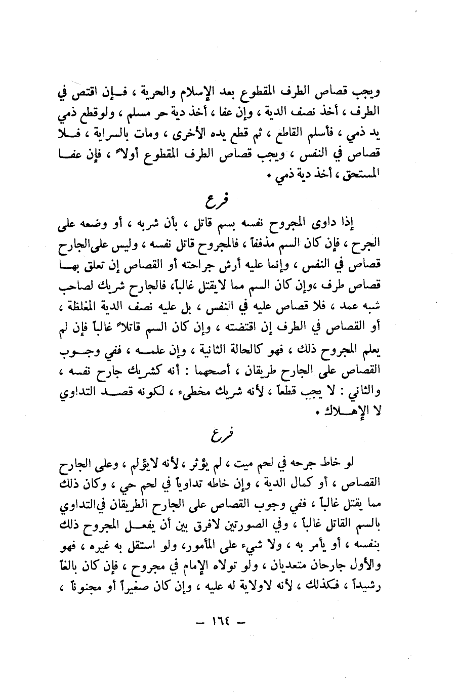 وَيَجِبُ قِصَاصُ الطَّرَفِ الْمَقْطُوعِ بَعْدَ الْإِسْلَامِ وَالْحُرِّيَّةِ، فَإِنِ اقْتَصَّ فِي الطَّرَفِ، أَخَذَ نِصْفَ الدِّيَةِ، وَإِنْ عَفَا، أَخَذَ دِيَةَ حُرٍّ مُسْلِمٍ.