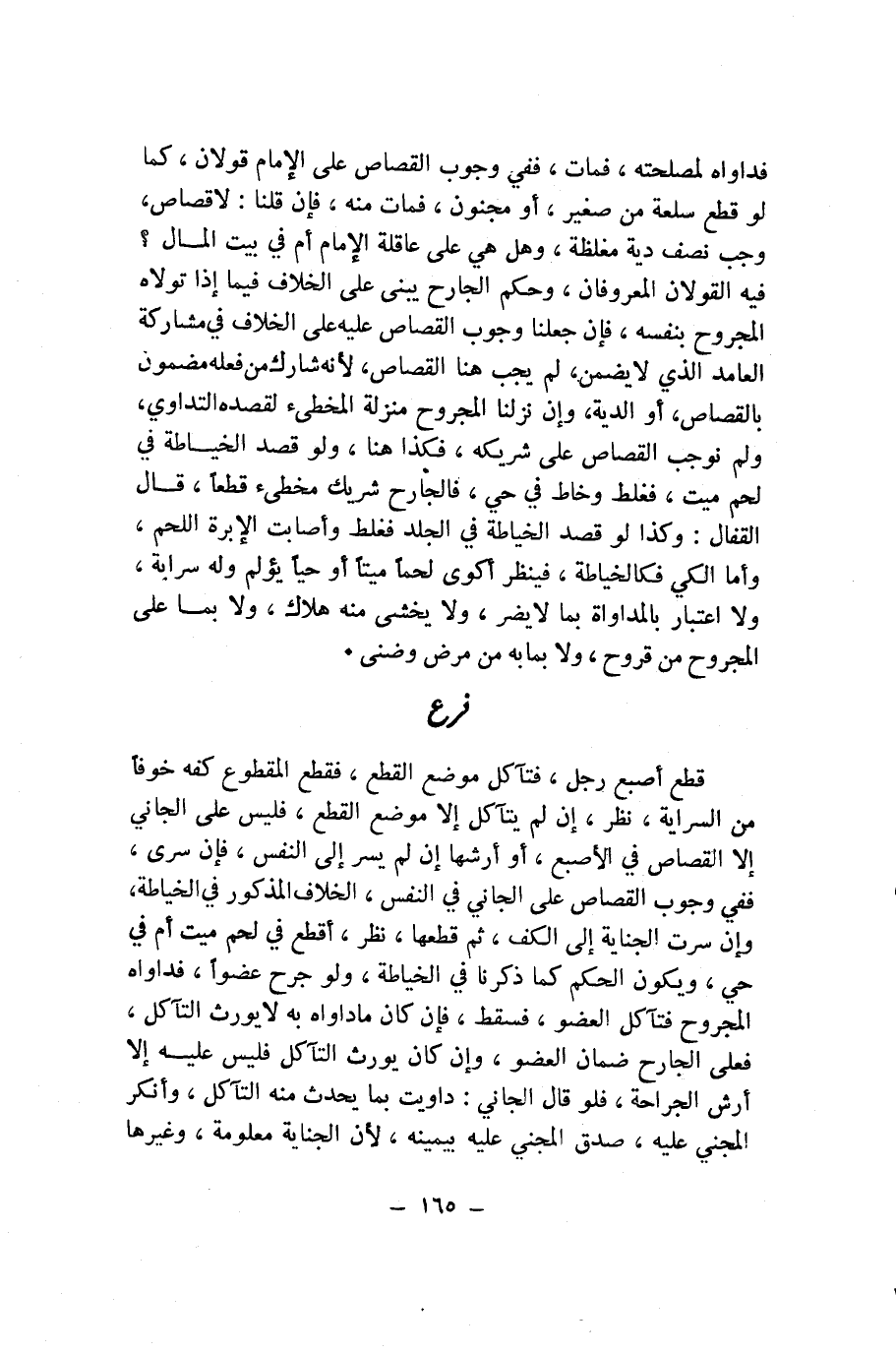 وَحُكْمُ الْجَارِحِ يُبْنَى عَلَى الْخِلَافِ فِيمَا إِذَا تَوَلَّاهُ الْمَجْرُوحُ بِنَفْسِهِ، فَإِنْ جَعَلْنَا وُجُوبَ الْقِصَاصِ عَلَيْهِ عَلَى الْخِلَافِ فِي مُشَارَكَةِ الْعَامِدِ الَّذِي لَا يَضْمَنُ، لَمْ يَجِبْ هُنَا الْقِصَاصُ، لِأَنَّهُ شَارَكَ مَنْ فِعْلُهُ مَضْمُونٌ بِالْقِصَاصِ، أَوِ الدِّيَةِ.
