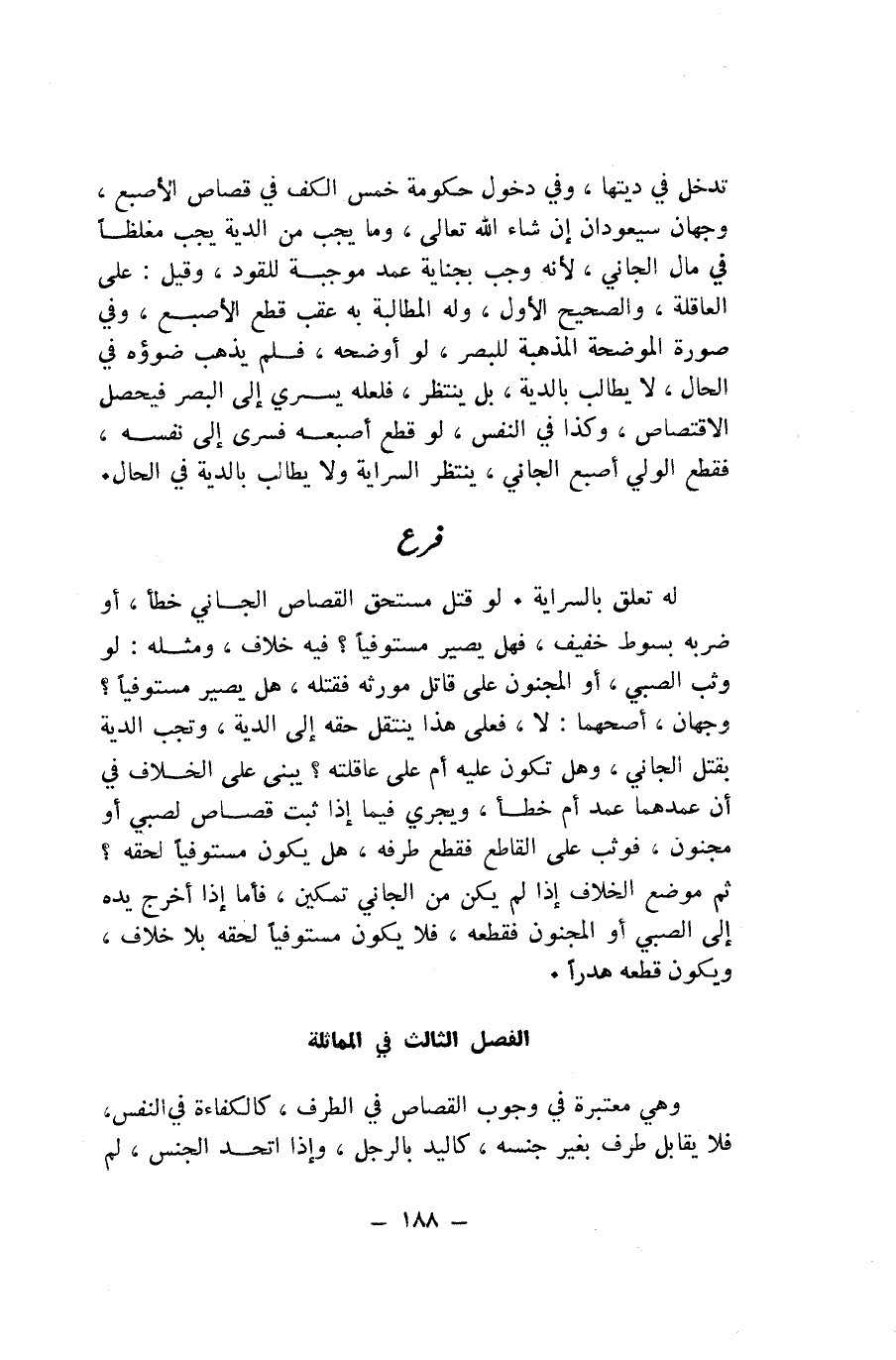 تَدْخُلُ فِي دِيَتِهَا، وَفِي دُخُولِ حُكُومَةِ خُمُسِ الْكَفِّ فِي قِصَاصِ الْأُصْبُعِ، وَجْهَانِ سَيَعُودَانِ إِنْ شَاءَ اللَّهُ تَعَالَى.