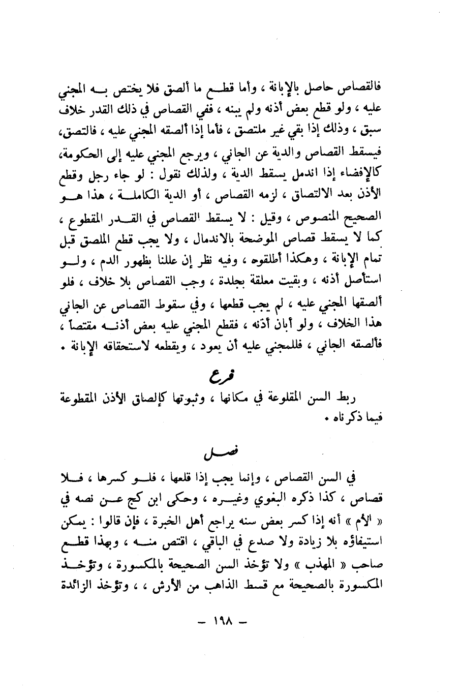 وَذَلِكَ إِذَا بَقِيَ غَيْرَ مُلْتَصِقٍ، فَأَمَّا إِذَا أَلْصَقَهُ الْمَجْنِيُّ عَلَيْهِ، فَالْتَصَقَ، فَيَسْقُطُ الْقِصَاصُ وَالدِّيَةُ عَنِ الْجَانِي، وَيَرْجِعُ الْمَجْنِيُّ عَلَيْهِ إِلَى الْحُكُومَةِ، كَالْإِفْضَاءِ إِذَا انْدَمَلَ يُسْقِطُ الدِّيَةَ، وَلِذَلِكَ نَقُولُ: لَوْ جَاءَ رَجُلٌ وَقَطَعَ الْأُذُنَ بَعْدَ الِالْتِصَاقِ، لَزِمَهُ الْقِصَاصُ، أَوِ الدِّيَةُ الْكَامِلَةُ، هَذَا هُوَ الصَّحِيحُ الْمَنْصُوصُ.