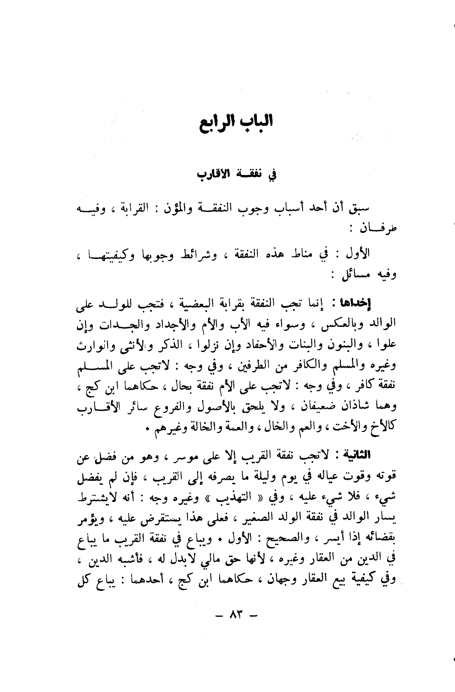 الْبَابُ الرَّابِعُ فِي نَفَقَةِ الْأَقَارِبِ