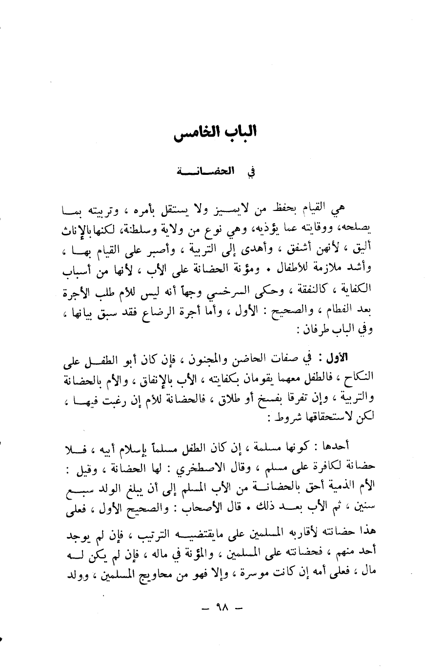 الْبَابُ الْخَامِسُ فِي الْحَضَانَةِ