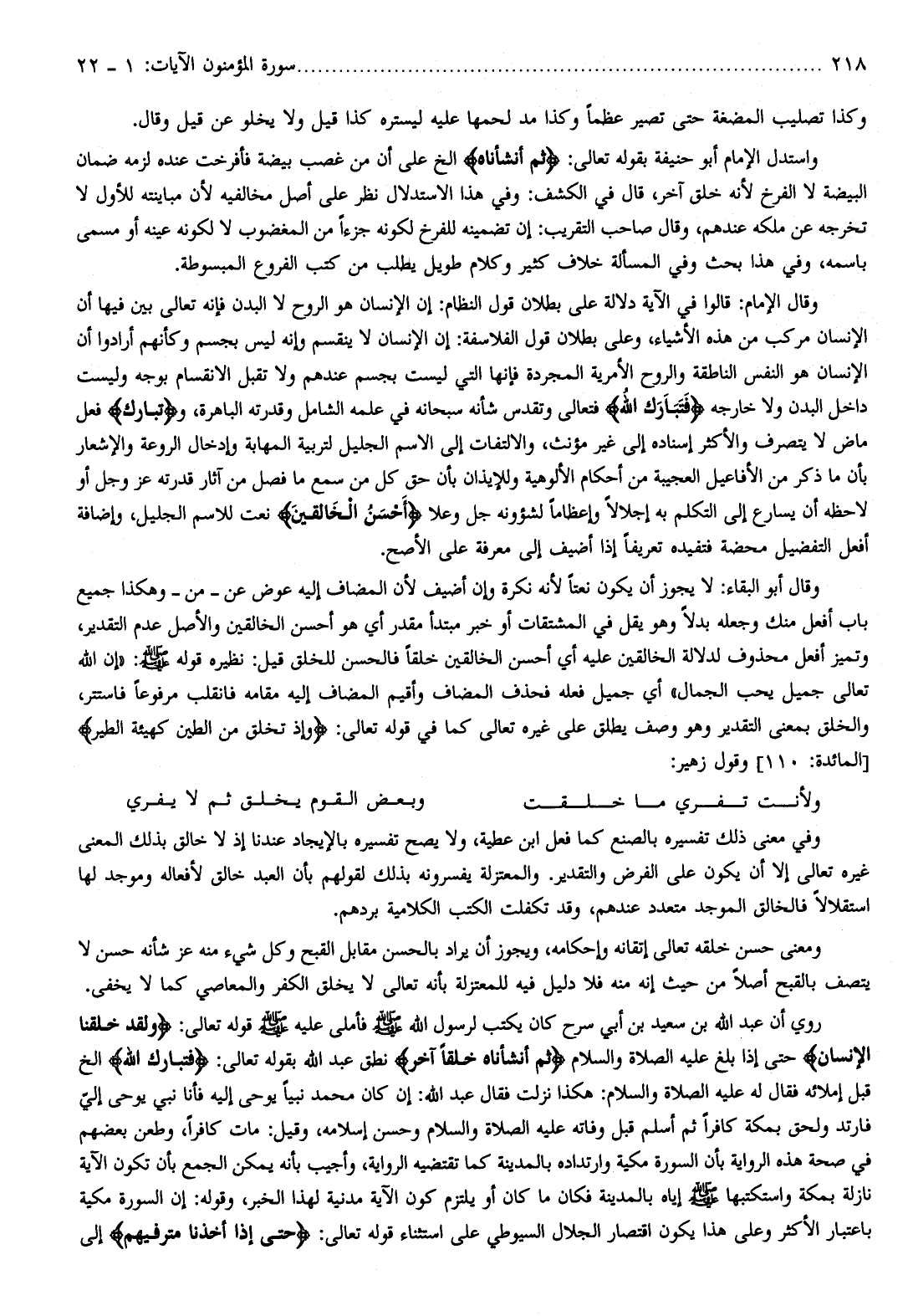 ومعنى حسن خلقه تعالى إتقانه وإحكامه، ويجوز أن يراد بالحسن مقابل القبح وكل شيء منه عز شأنه حسن لا يتصف بالقبح أصلا من حيث إنه منه فلا دليل فيه للمعتزلة بأنه تعالى لا يخلق الكفر والمعاصي كما لا يخفى.