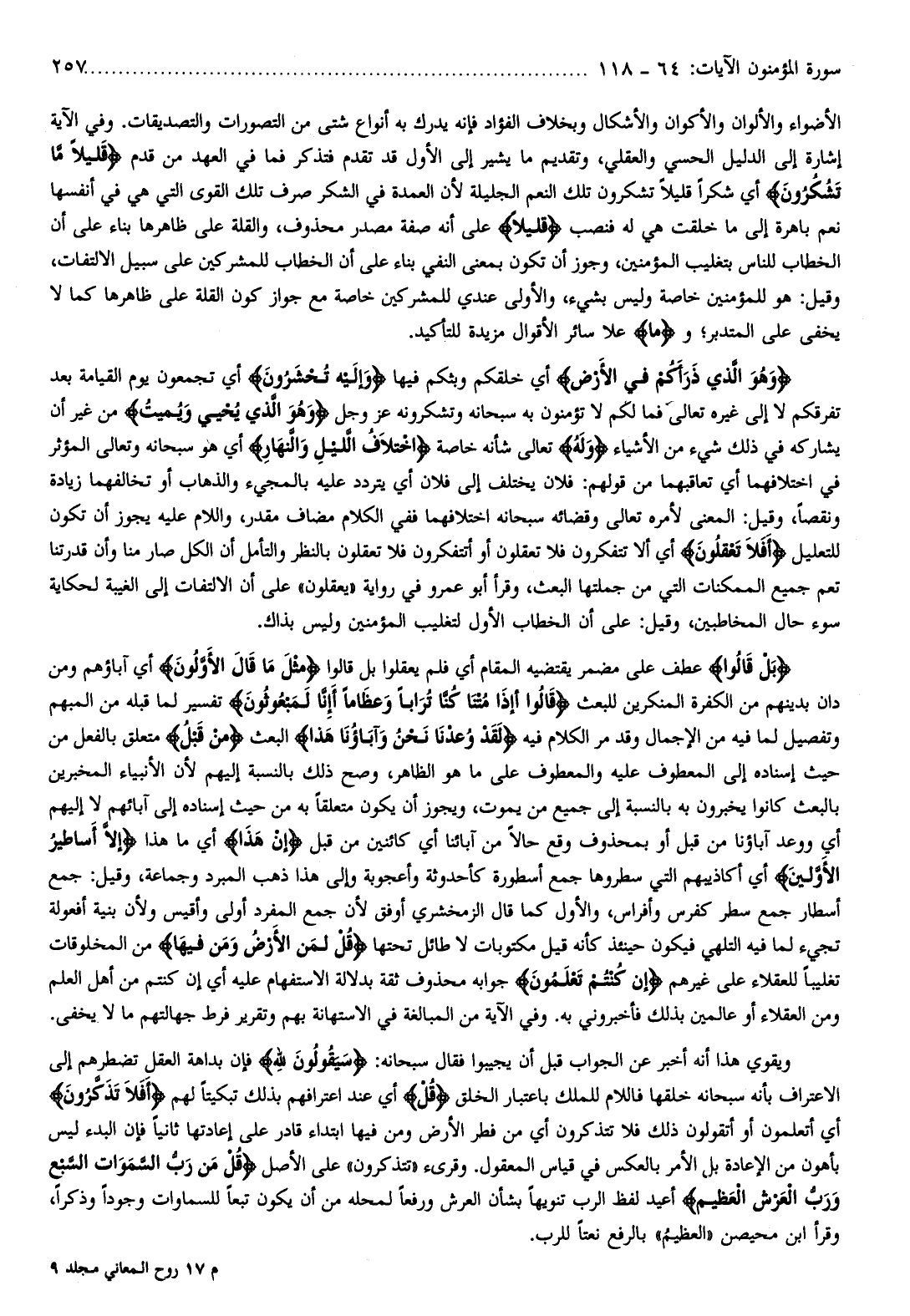 بَلْ قالُوا عطف على مضمر يقتضيه المقام أي فلم يعقلوا بل قالوا مِثْلَ ما قالَ الْأَوَّلُونَ أي آباؤهم ومن دان بدينهم من الكفرة المنكرين للبعث قالُوا أَإِذا مِتْنا وَكُنَّا تُراباً وَعِظاماً أَإِنَّا لَمَبْعُوثُونَ تفسير لما قبله من المبهم وتفصيل لما فيه من الإجمال وقد مر الكلام فيه لَقَدْ وُعِدْنا نَحْنُ وَآباؤُنا هذا البعث مِنْ قَبْلُ متعلق بالفعل من حيث إسناده إلى المعطوف عليه والمعطوف على ما هو الظاهر، وصح ذلك بالنسبة إليهم لأن الأنبياء المخبرين بالبعث كانوا يخبرون به بالنسبة إلى جميع من يموت، ويجوز أن يكون متعلقا به من حيث إسناده إلى آبائهم لا إليهم أي ووعد آباؤنا من قبل أو بمحذوف وقع حالا من آبائنا أي كائنين من قبل إِنْ هذا أي ما هذا إِلَّا أَساطِيرُ الْأَوَّلِينَ أي أكاذيبهم التي سطروها جمع أسطورة كأحدوثة وأعجوبة وإلى هذا ذهب المبرد وجماعة، وقيل: جمع أسطار جمع سطر كفرس وأفراس، والأول كما قال الزمخشري أوفق لأن جمع المفرد أولى وأقيس ولأن بنية أفعولة تجيء لما فيه التلهي فيكون حينئذ كأنه قيل مكتوبات لا طائل تحتها قُلْ لِمَنِ الْأَرْضُ وَمَنْ فِيها من المخلوقات تغليبا للعقلاء على غيرهم إِنْ كُنْتُمْ تَعْلَمُونَ جوابه محذوف ثقة بدلالة الاستفهام عليه أي إن كنتم من أهل العلم ومن العقلاء أو عالمين بذلك فأخبروني به. وفي الآية من المبالغة في الاستهانة بهم وتقرير فرط جهالتهم ما لا يخفى.