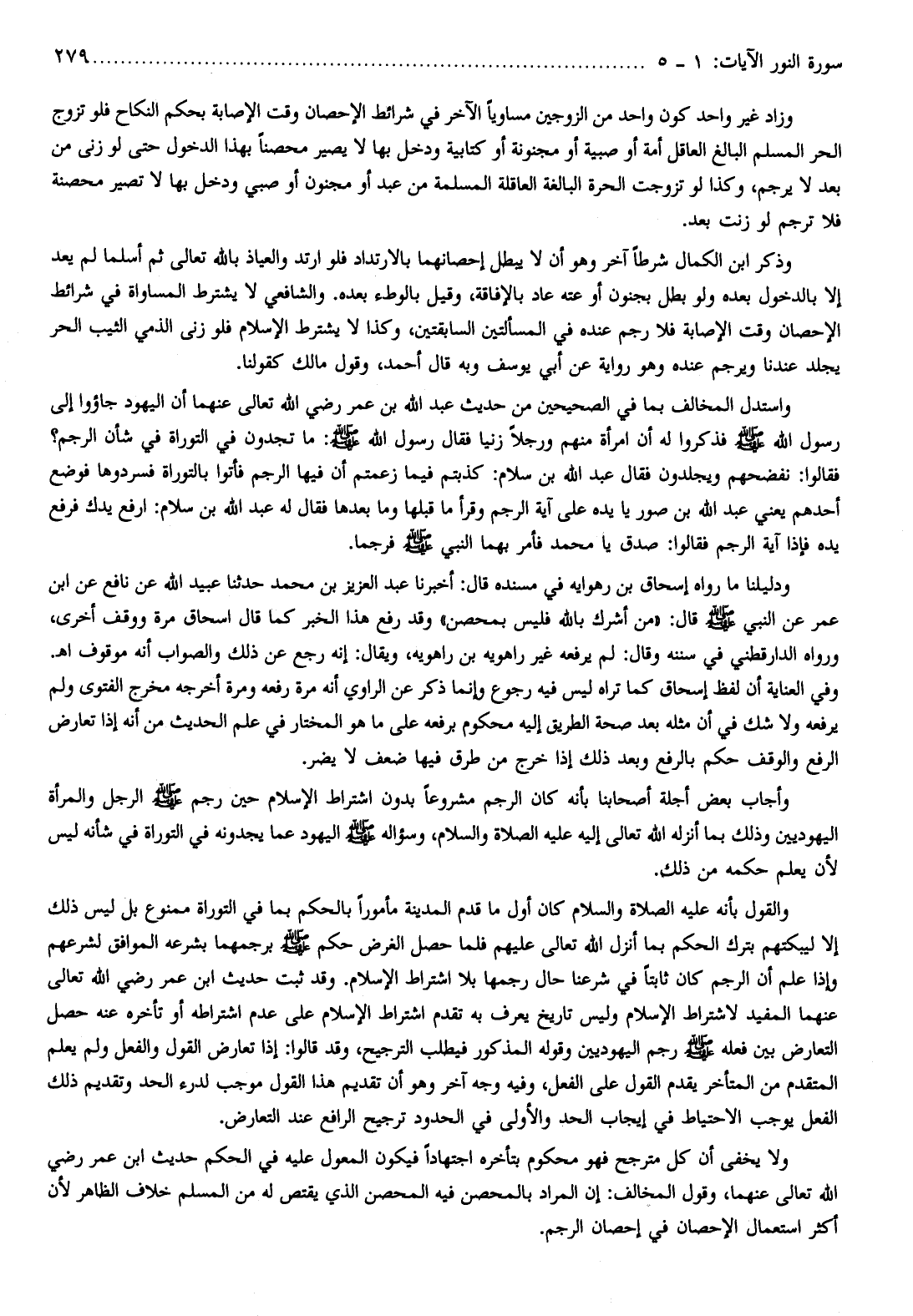 وأجاب بعض أجلة أصحابنا بأنه كان الرجم مشروعا بدون اشتراط الإسلام حين رجم صلّى الله عليه وسلّم الرجل والمرأة اليهوديين وذلك بما أنزله الله تعالى إليه عليه الصلاة والسلام، وسؤاله صلّى الله عليه وسلّم اليهود عما يجدونه في التوراة في شأنه ليس لأن يعلم حكمه من ذلك.