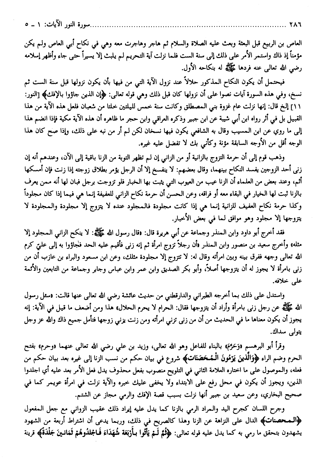 وجرح اللسان كجرح اليد والمراد الرمي بالزنا كما يدل عليه إيراد ذلك عقيب الزواني مع جعل المفعول الْمُحْصَناتِ الدال على النزاهة عن الزنا وهذا كالصريح في ذلك، وربما يدعى أن اشتراط أربعة من الشهود يشهدون بتحقق ما رمي به كما يدل عليه قوله تعالى: ثُمَّ لَمْ يَأْتُوا بِأَرْبَعَةِ شُهَداءَ فَاجْلِدُوهُمْ ثَمانِينَ جَلْدَةً قرينة
