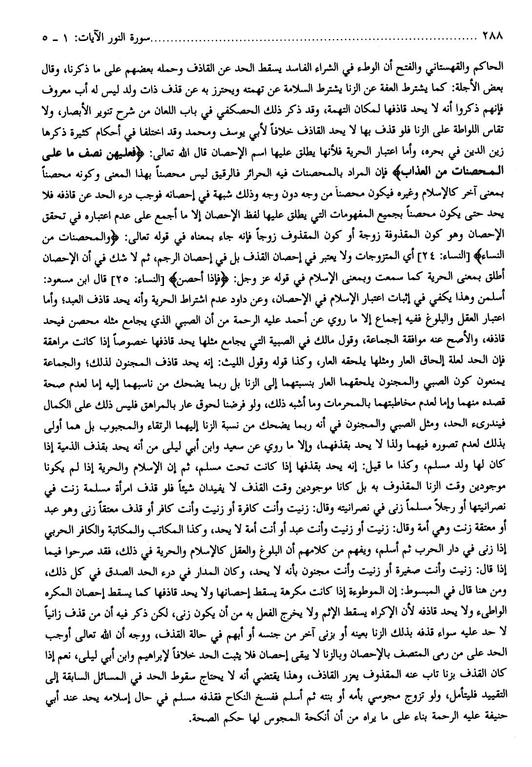 الحاكم والقهستاني والفتح أن الوطء في الشراء الفاسد يسقط الحد عن القاذف وحمله بعضهم على ما ذكرنا، وقال بعض الأجلة: كما يشترط العفة عن الزنا يشترط السلامة عن تهمته ويحترز به عن قذف ذات ولد ليس له أب معروف فإنهم ذكروا أنه لا يحد قاذفها لمكان التهمة، وقد ذكر ذلك الحصكفي في باب اللعان من شرح تنوير الأبصار، ولا تقاس اللواطة على الزنا فلو قذف بها لا يحد القاذف خلافا لأبي يوسف ومحمد وقد اختلفا في أحكام كثيرة ذكرها زين الدين في بحره، وأما اعتبار الحرية فلأنها يطلق عليها اسم الإحصان قال الله تعالى: فَعَلَيْهِنَّ نِصْفُ ما عَلَى الْمُحْصَناتِ مِنَ الْعَذابِ فإن المراد بالمحصنات فيه الحرائر فالرقيق ليس محصنا بهذا المعنى وكونه محصنا بمعنى آخر كالإسلام وغيره فيكون محصنا من وجه دون وجه وذلك شبهة في إحصانه فوجب درء الحد عن قاذفه فلا يحد حتى يكون محصنا بجميع المفهومات التي يطلق عليها لفظ الإحصان إلا ما أجمع على عدم اعتباره في تحقق الإحصان وهو كون المقذوفة زوجة أو كون المقذوف زوجا فإنه جاء بمعناه في قوله تعالى: وَالْمُحْصَناتُ مِنَ النِّساءِ [النساء: 24] أي المتزوجات ولا يعتبر في إحصان القذف بل في إحصان الرجم، ثم لا شك في أن الإحصان أطلق بمعنى الحرية كما سمعت وبمعنى الإسلام في قوله عز وجل: فَإِذا أُحْصِنَّ [النساء: 25] قال ابن مسعود: