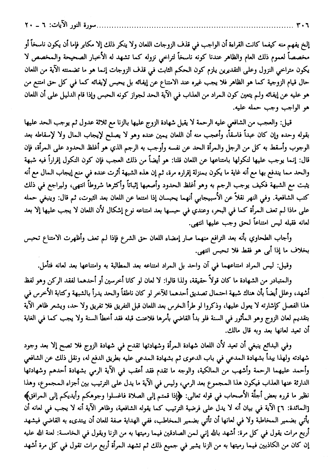 إلخ يفهم منه كيفما كانت القراءة أن الواجب في قذف الزوجات اللعان ولا ينكر ذلك إلا مكابر فإما أن يكون ناسخا أو مخصصا لعموم ذلك العام والظاهر عندنا كونه ناسخا لتراخي نزوله كما تشهد له الأخبار الصحيحة والمخصص لا يكون متراخي النزول وعلى التقديرين يلزم كون الحكم الثابت في قذف الزوجات إنما هو ما تضمنته الآية من اللعان حال قيام الزوجية كما هو الظاهر فلا يجب غيره عند الامتناع عن إيفائه بل يحبس لإيفائه كما في كل حق امتنع من هو عليه عن إيفائه ولم يتعين كون المراد من العذاب في الآية الحد لجواز كونه الحبس وإذا قام الدليل على أن اللعان هو الواجب وجب حمله عليه.
