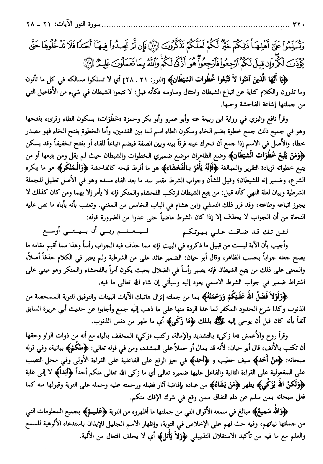 يا أَيُّهَا الَّذِينَ آمَنُوا لا تَتَّبِعُوا خُطُواتِ الشَّيْطانِ [النور: 21. 28] أي لا تسلكوا مسالكه في كل ما تأتون وما تذرون والكلام كناية عن اتباع الشيطان وامتثال وساوسه فكأنه قيل: لا تتبعوا الشيطان في شيء من الأفاعيل التي من جملتها إشاعة الفاحشة وحبها.