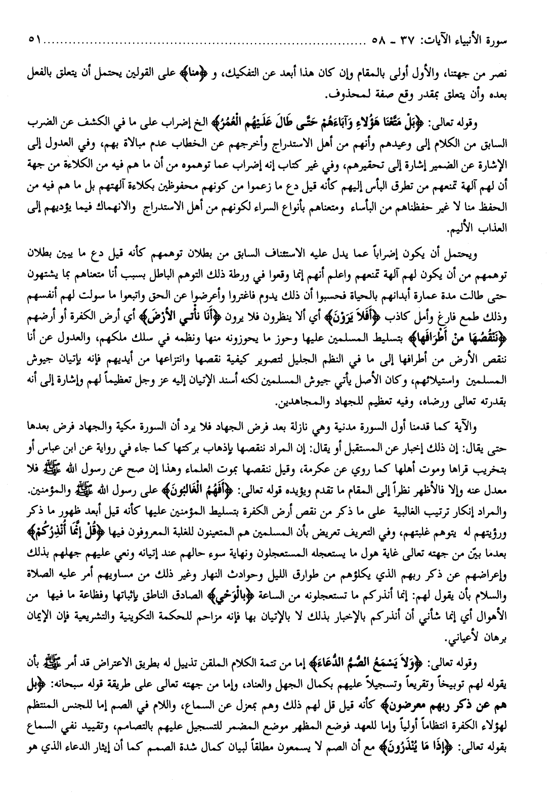 والمراد إنكار ترتيب الغالبية على ما ذكر من نقص أرض الكفرة بتسليط المؤمنين عليها كأنه قيل أبعد ظهور ما ذكر ورؤيتهم له يتوهم غلبتهم، وفي التعريف تعريض بأن المسلمين هم المتعينون للغلبة المعروفون فيها قُلْ إِنَّما أُنْذِرُكُمْ بعد ما بيّن من جهته تعالى غاية هول ما يستعجله المستعجلون ونهاية سوء حالهم عند إتيانه ونعي عليهم جهلهم بذلك وإعراضهم عن ذكر ربهم الذي يكلؤهم من طوارق الليل وحوادث النهار وغير ذلك من مساويهم أمر عليه الصلاة والسلام بأن يقول لهم: إنما أنذركم ما تستعجلونه من الساعة بِالْوَحْيِ الصادق الناطق بإثباتها وفظاعة ما فيها من الأهوال أي إنما شأني أن أنذركم بالإخبار بذلك لا بالإتيان بها فإنه مزاحم للحكمة التكوينية والتشريعية فإن الإيمان برهان لأعياني.