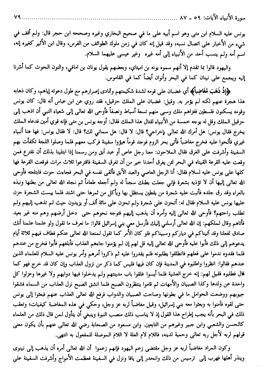 إِذْ ذَهَبَ مُغاضِباً أي غضبان على قومه لشدة شكيمتهم وتمادى إصرارهم مع طول دعوته إياهم، وكان ذهابه هذا هجرة عنهم لكنه لم يؤمر به. وقيل: غضبان على الملك حزقيل،