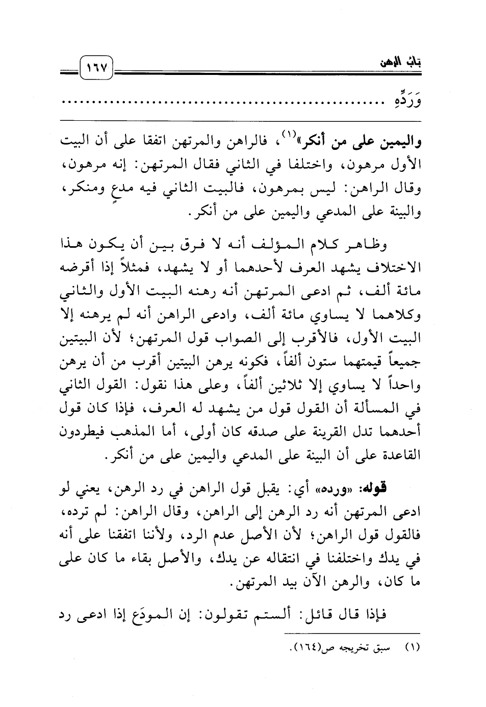 قوله: «ورده» أي: يقبل قول الراهن في رد الرهن، يعني لو ادعى المرتهن أنه رد الرهن إلى الراهن، وقال الراهن: لم ترده، فالقول قول الراهن؛ لأن الأصل عدم الرد، ولأننا اتفقنا على أنه في يدك واختلفنا في انتقاله عن يدك، والأصل بقاء ما كان على ما كان، والرهن الآن بيد المرتهن.
