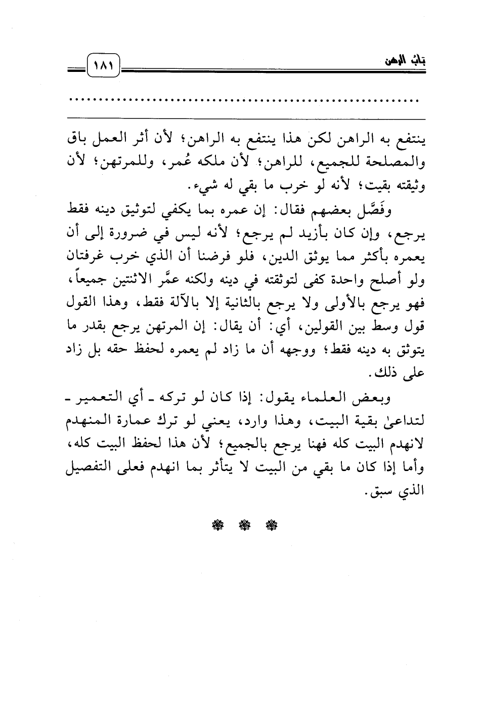 وبعض العلماء يقول: إذا كان لو تركه ـ أي التعمير ـ لتداعى بقية البيت، وهذا وارد، يعني لو ترك عمارة المنهدم لانهدم البيت كله فهنا يرجع بالجميع؛ لأن هذا لحفظ البيت كله، وأما إذا كان ما بقي من البيت لا يتأثر بما انهدم فعلى التفصيل الذي سبق.