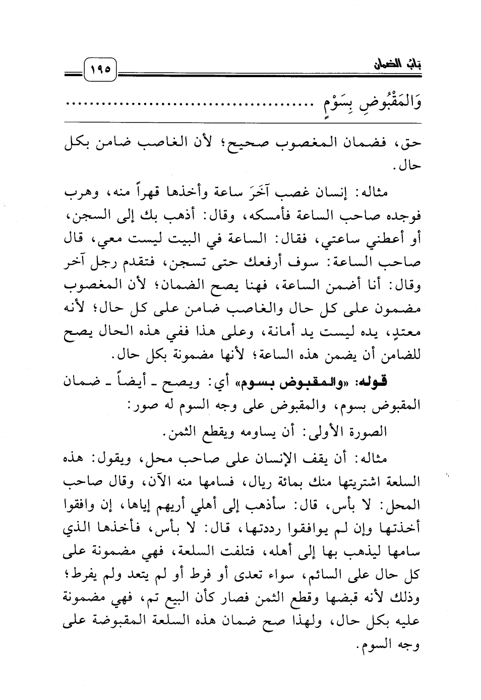 قوله: «والمقبوض بسوم» أي: ويصح ـ أيضاً ـ ضمان المقبوض بسوم، والمقبوض على وجه السوم له صور: