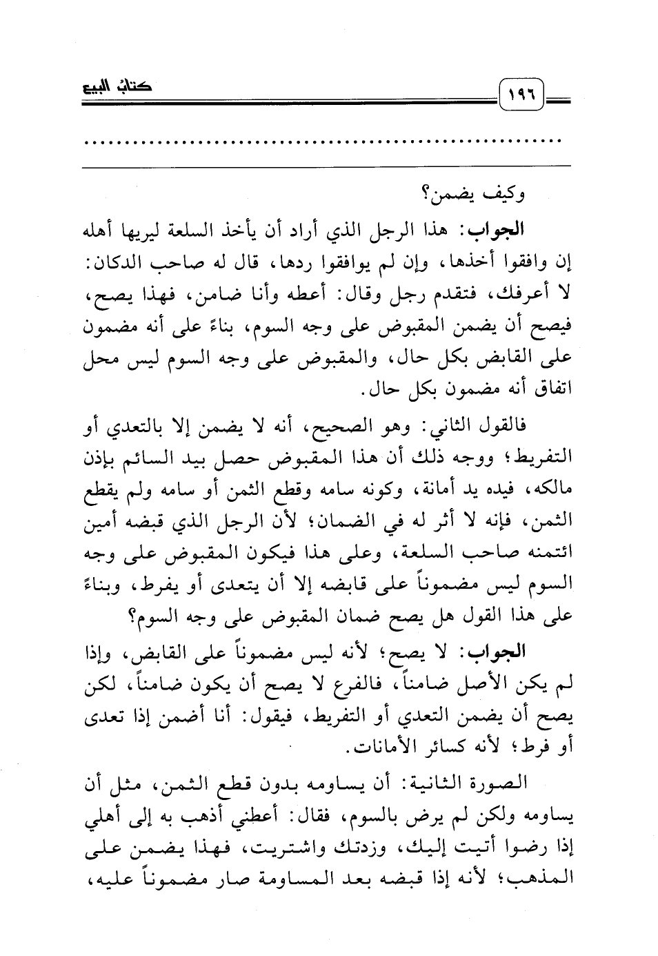 الجواب: هذا الرجل الذي أراد أن يأخذ السلعة ليريها أهله إن وافقوا أخذها، وإن لم يوافقوا ردها، قال له صاحب الدكان: لا أعرفك، فتقدم رجل وقال: أعطه وأنا ضامن، فهذا يصح، فيصح أن يضمن المقبوض على وجه السوم، بناءً على أنه مضمون على القابض بكل حال، والمقبوض على وجه السوم ليس محل اتفاق أنه مضمون بكل حال.