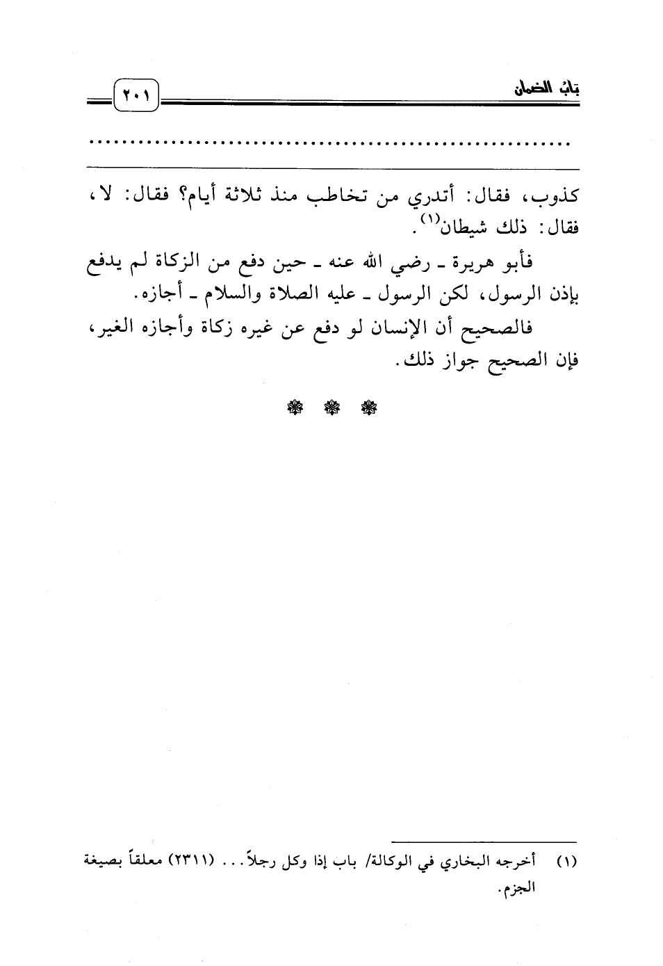(¬1) أخرجه البخاري في الوكالة/ باب إذا وكل رجلاً ... (2311) معلقاً بصيغة الجزم.