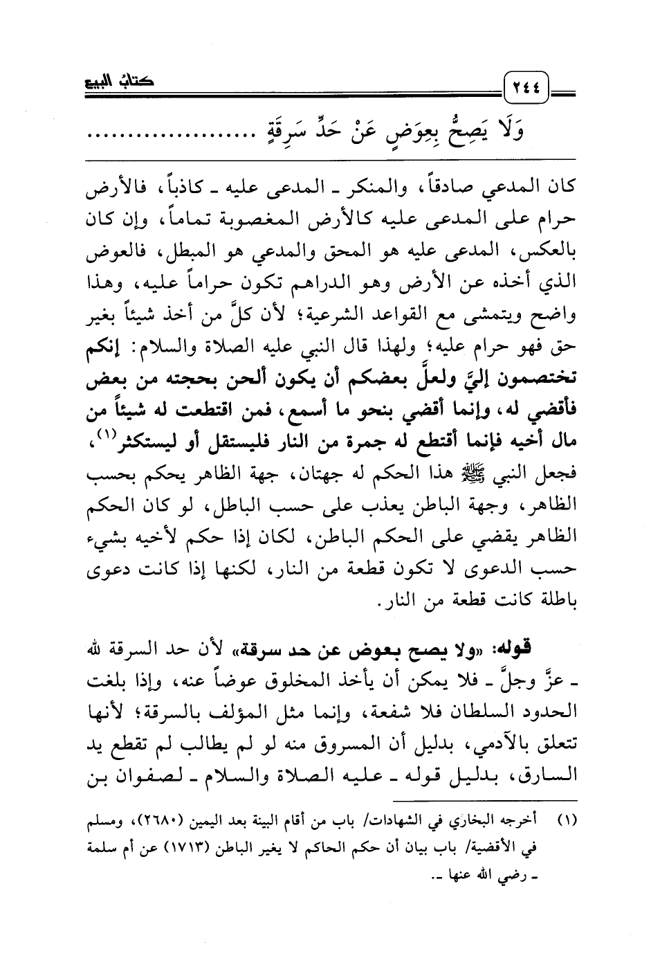 (¬1) أخرجه البخاري في الشهادات/ باب من أقام البينة بعد اليمين (2680)، ومسلم في الأقضية/ باب بيان أن حكم الحاكم لا يغير الباطن (1713) عن أم سلمة ـ رضي الله عنها ـ.