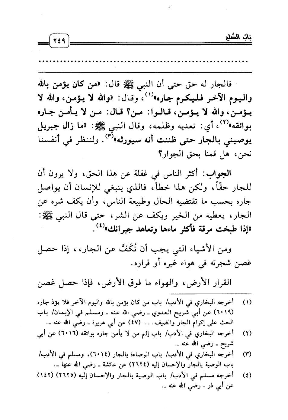 (¬3) أخرجه البخاري في الأدب/ باب الوصاءة بالجار (6014)، ومسلم في الأدب/ باب الوصية بالجار والإحسان إليه (2624) عن عائشة ـ رضي الله عنها ـ.