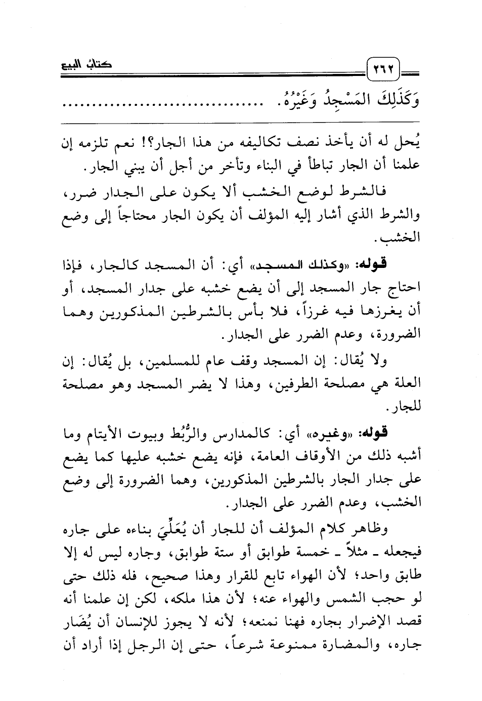 قوله: «وكذلك المسجد» أي: أن المسجد كالجار، فإذا احتاج جار المسجد إلى أن يضع خشبه على جدار المسجد، أو أن يغرزها فيه غرزاً، فلا بأس بالشرطين المذكورين وهما الضرورة، وعدم الضرر على الجدار.
