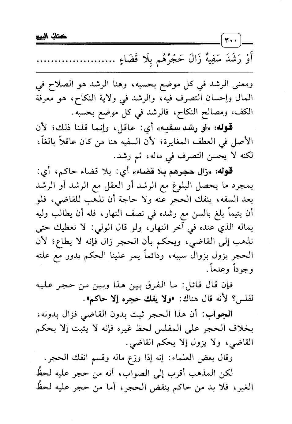 قوله: «زال حجرهم بلا قضاء» أي: بلا قضاء حاكم، أي: بمجرد ما يحصل البلوغ مع الرشد أو العقل مع الرشد أو الرشد بعد السفه، ينفك الحجر عنه ولا حاجة أن نذهب للقاضي، فلو أن يتيماً بلغ بالسن مع رشده في نصف النهار، فله أن يطالب وليه بماله الذي عنده في آخر النهار، ولو قال الولي: لا نعطيك حتى نذهب إلى القاضي، ويحكم بأن الحجر زال فإنه لا يطاع؛ لأن الحجر يزول بزوال سببه، ودائماً يمر علينا الحكم يدور مع علته وجوداً وعدماً.