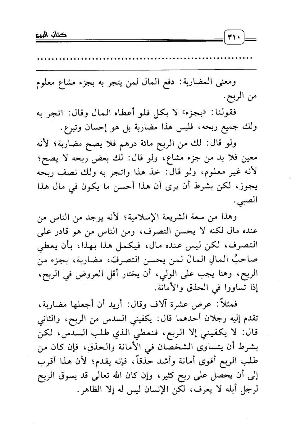 وهذا من سعة الشريعة الإسلامية؛ لأنه يوجد من الناس من عنده مال لكنه لا يحسن التصرف، ومن الناس من هو قادر على التصرف، لكن ليس عنده مال، فيكمل هذا بهذا، بأن يعطي صاحبُ المالِ المالَ لمن يحسن التصرفَ، مضاربة، بجزء من الربح، وهنا يجب على الولي، أن يختار أقل العروض في الربح، إذا تساووا في الحذق والأمانة.