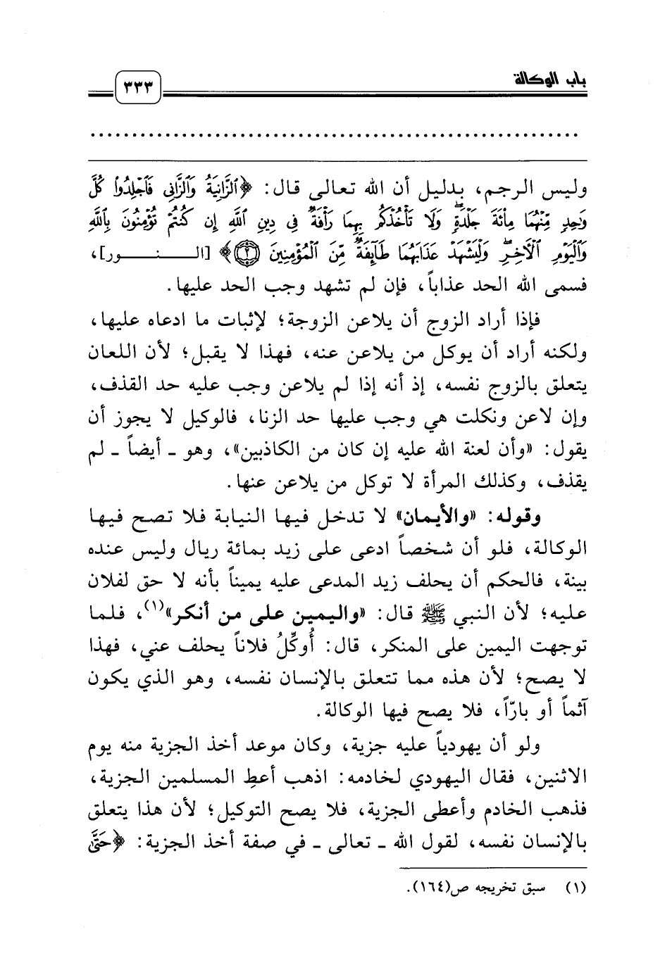 ولو أن يهودياً عليه جزية، وكان موعد أخذ الجزية منه يوم الاثنين، فقال اليهودي لخادمه: اذهب أعطِ المسلمين الجزية، فذهب الخادم وأعطى الجزية، فلا يصح التوكيل؛ لأن هذا يتعلق بالإنسان نفسه، لقول الله ـ تعالى ـ في صفة أخذ الجزية: {حَتَّى