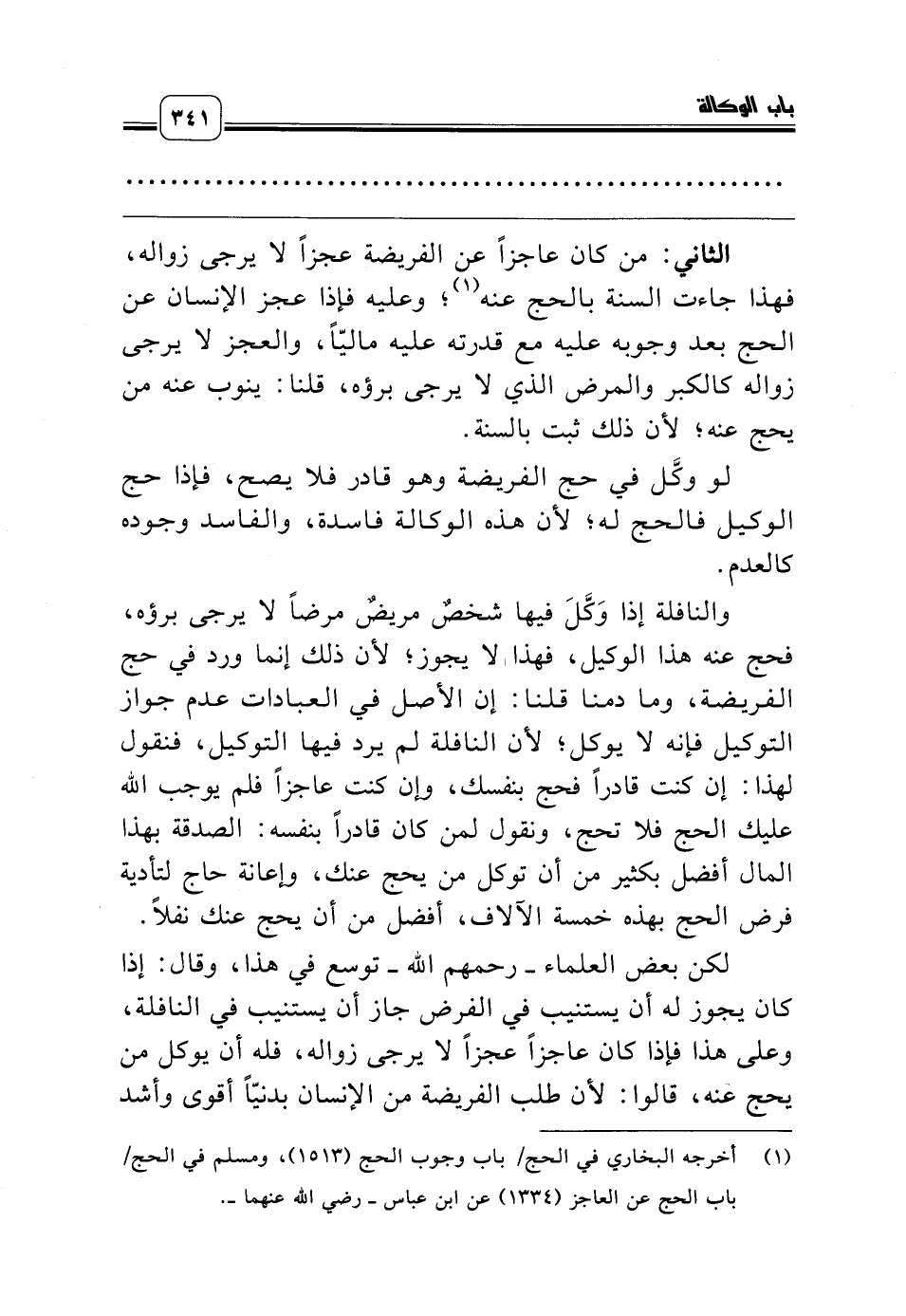 (¬1) أخرجه البخاري في الحج/ باب وجوب الحج (1513)، ومسلم في الحج/ باب الحج عن العاجز (1334) عن ابن عباس ـ رضي الله عنهما ـ.
