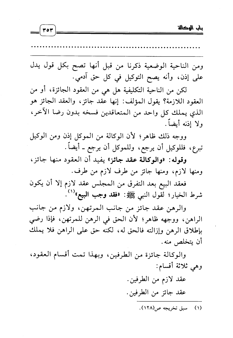 وقوله: «والوكالة عقد جائز» يفيد أن العقود منها جائز، ومنها لازم، ومنها جائز من طرف لازم من طرف.