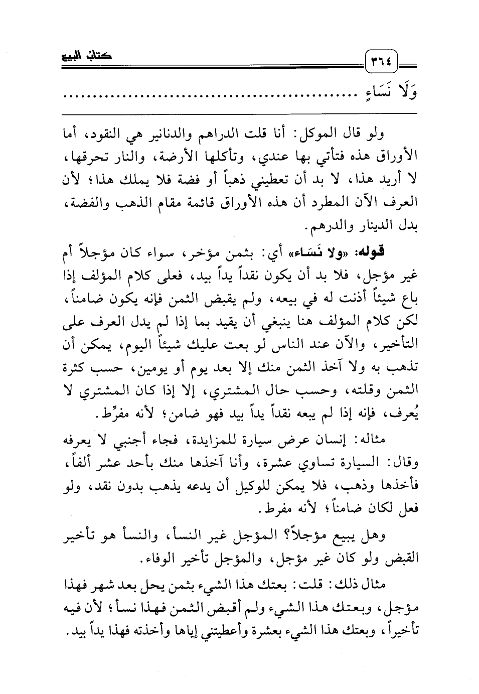 وهل يبيع مؤجلاً؟ المؤجل غير النسأ، والنسأ هو تأخير القبض ولو كان غير مؤجل، والمؤجل تأخير الوفاء.